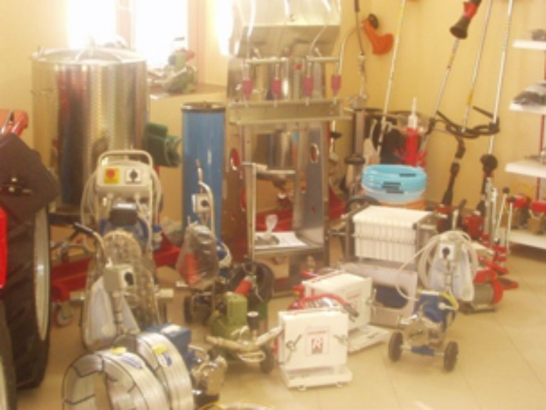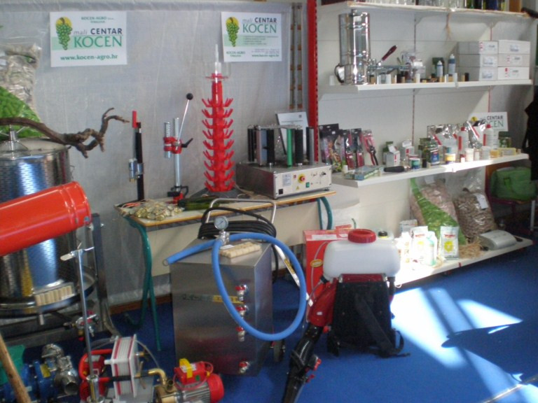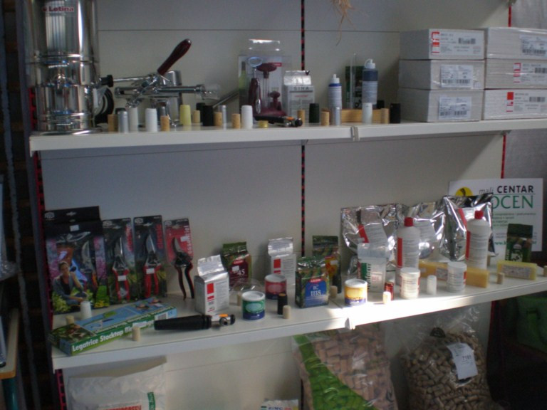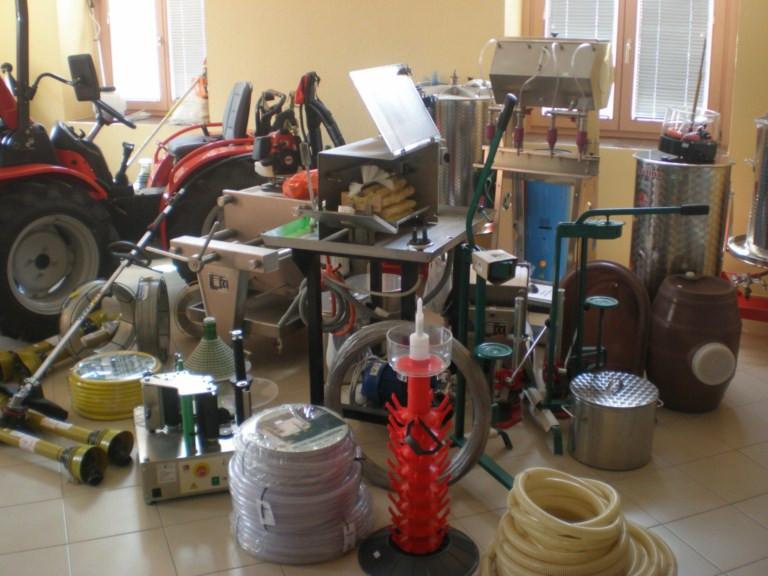 - ostala oprema i pribor za vinogradare i podrumare ( stupovi,žica i natezači, zaštitne vrećice za trsove, razne vrste veziva, škare za rezanje - profi i hobi, ručne i motorne prskalice, trimeri, inoh, drvene i PVC pipe za bačve, moštomjeri, vrenjače, refraktometri, dezinfektori i ocjeđivači za boce